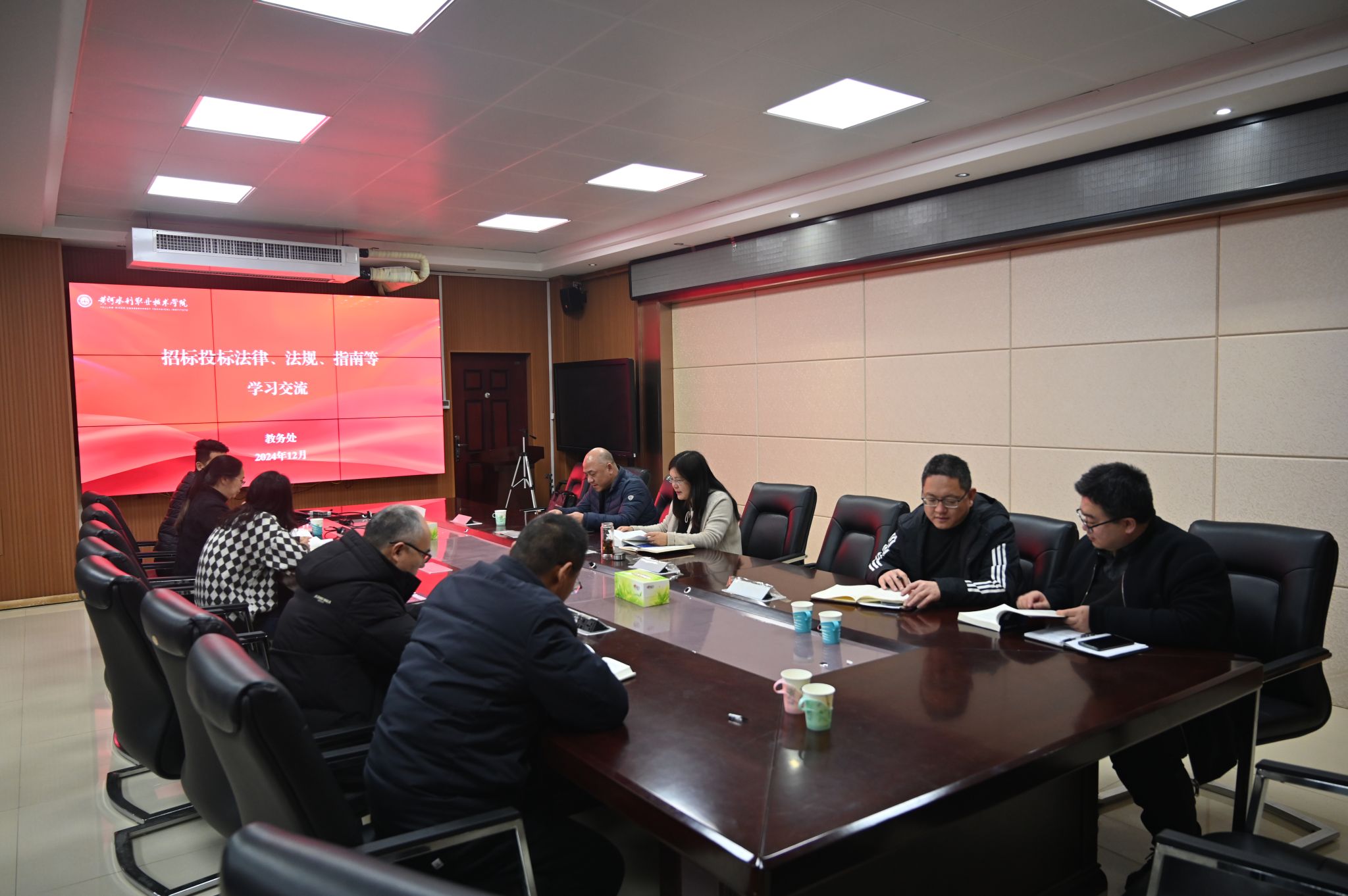 为推进落实巡视整改任务,提高自身业务工作水平,2024年12月17日,教务处组织全体教职工在教务处会议室学习了《中华人民共和国政府采购法(第六版)》《实用版法规专辑——招标投标》《政府采购法一本通》和《招标投标合规指南》。教务处处长陶永霞主持会议,教务处全体教职工参加会议。