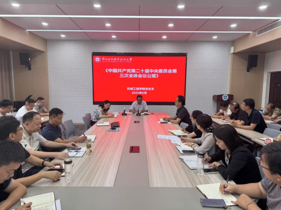 6月17日下午,机械工程学院在5号实训馆5211会议室组织专题学习会,学习《中国共产党第二十届中央委员会第三次全体会议公报》《中共中央关于进一步全面深化改革推进中国式现代化的决定》和《习近平关于河南工作论述摘编》等文件精神。学院全体教职工参加学习会。