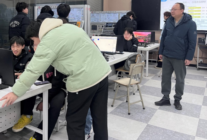 贾磊结合工业实际场景,讲解自动化编程基础、仿真软件操作及典型控制案例建模,通过拆解流程、演示关键步骤,帮助学生理清应用逻辑,破解学习痛点。互动环节,学生围绕软件选型、编程技巧等问题提问,贾磊结合实践经验答疑,鼓励学生强化实践能力