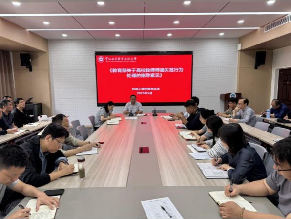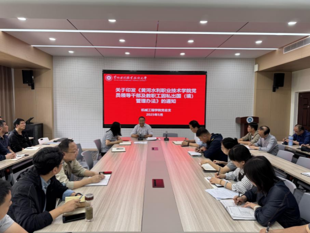 5月6日下午,机械工程学院在5号实训馆5211会议室组织专题学习会,学习《教育部关于高校教师师德失范行为处理的指导意见》《新时代高校教师职业行为十项准则》和《黄河水利职业技术学院党员领导干部及教职工因私出国(境)管理办法》文件精神。学院全体教职工参加学习会。
