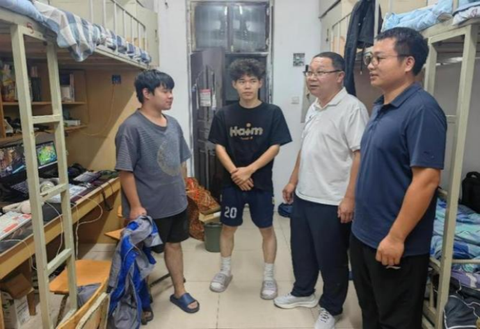 当晚,院党总支书记杨彦涛、副书记张嫚带队深入学生宿舍,走访慰问暑期返校学生。走访期间,学院领导与同学们亲切交流,细致了解大家暑期生活、学业进展及新学期规划,并认真听取同学们的意见与需求,叮嘱同学们要不断增强安全意识,保持规律作息,以积极饱满的状态迎接新学期的挑战。此次走访不仅拉近了师生距离,也让学生深切感受到学院的温暖与关怀,为新学期营造了和谐温馨的育人氛围。