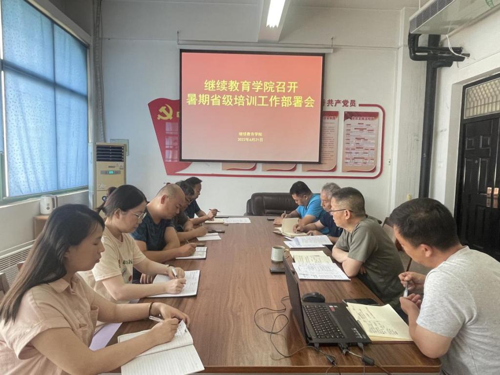 6月21日,继续教育学院组织全体教职工在会议室召开2022年暑期省级培训工作部署会,会议由院长薛建荣主持。