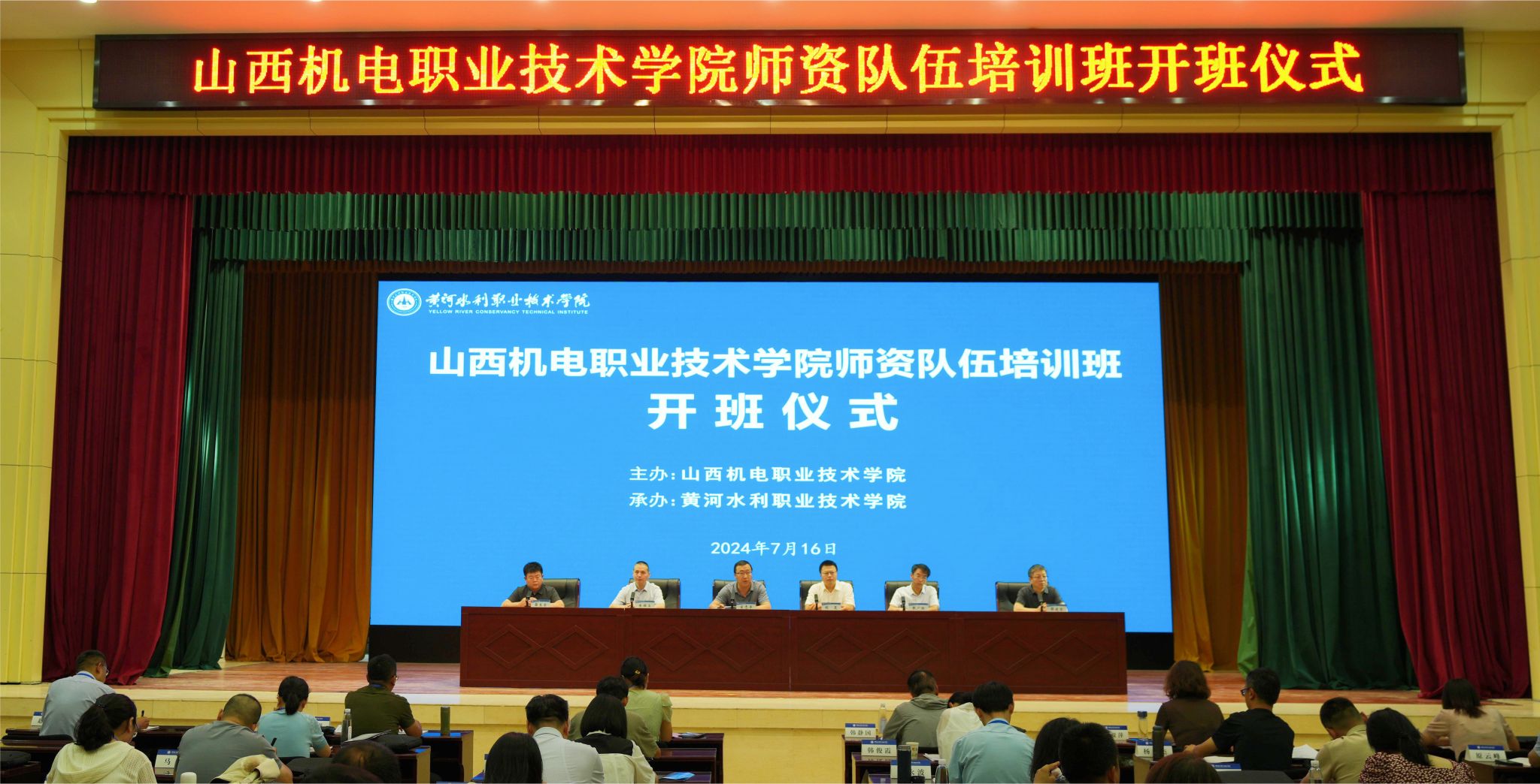 由我校承办的山西机电职业技术学院师资队伍培训班7月16日开班,开班仪式在学生活动中心报告厅举行。山西机电职业技术学院党委副书记、校长宋志平,副校长张广红,我校党委副书记、校长胡昊,副校长朱焕立出席仪式,山西机电职业技术学院人事部、教务部、实训教学中心教育教学管理人员及各系部专业带头人、骨干教师,我校继续教育学院相关人员参加仪式。仪式由朱焕立主持。