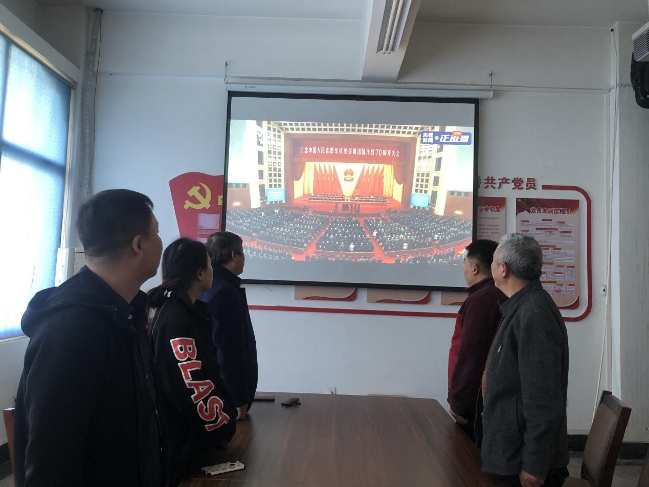 全体教职工聚精会神地观看中国人民志愿军抗美援朝出国作战70周年大会,缅怀英勇牺牲的先烈,学习革命先辈英勇顽强、一往无前的精神。