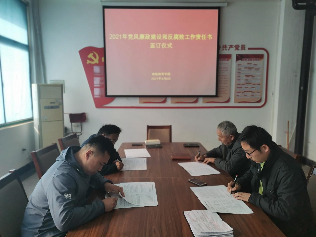 2021年4月6日,继续教育学院院长杜广平组织科级以上干部集体签署了党风廉政建设和反腐败工作责任书。