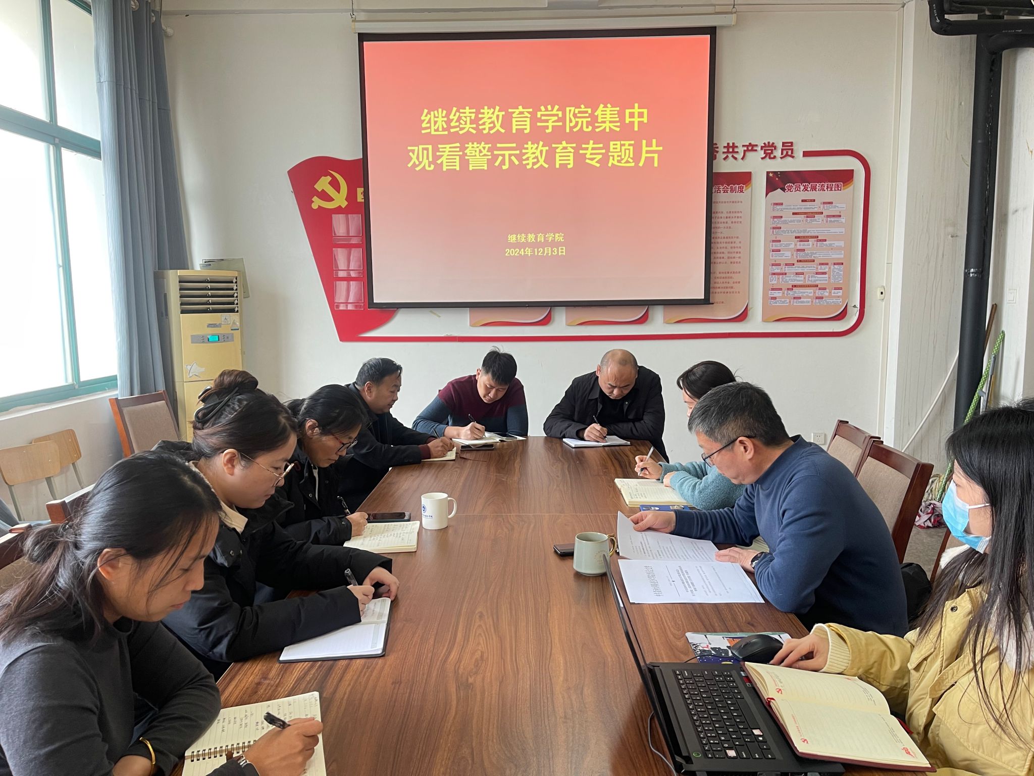 为深入贯彻落实全面从严治党要求,增强干部职工的廉洁自律意识和拒腐防变能力,继续教育学院于12月3日组织全体教职工集中观看警示教育专题片《持续发力 纵深推进》第四集《一体推进“三不腐”》。