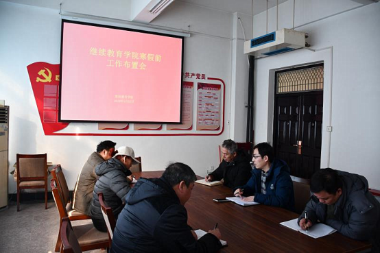 1月21日下午,继续教育学院在四号教学楼会议室召开了寒假前工作布置会议,继续教育学院全体工作人员参加,会议由党政办公室主任侯长伟主持。