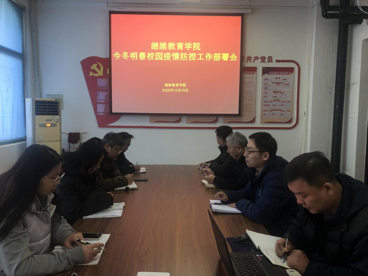 12月15日,继续教育学院在四号楼会议室召开今冬明春校园疫情防控工作部署会,会议由院长杜广平主持,全体教职工参加会议。