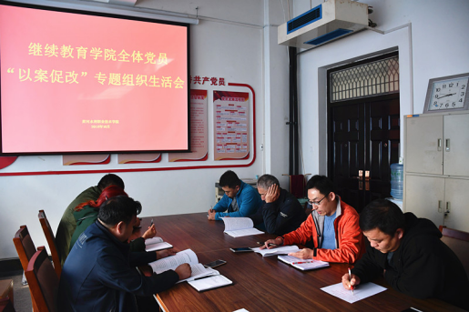 继续教育学院副院长靳祥升向继续教育学院全体党员传达了《黄河水利职业技术学院集中开展以案促改专项工作实施方案》精神,直属党支部书记杜广平通报了相关典型案例。