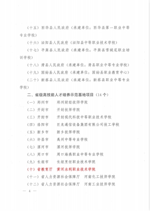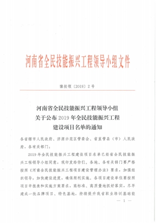 近日,河南省全民技能振兴工程领导小组印发《河南省全民技能振兴工程领导小组关于公布2019年全民技能振兴工程建设项目名单的通知》(豫技领〔2019〕2号),我校申报的省级高技能人才培养示范基地项目被批准立项建设,获批500万元资金支持。