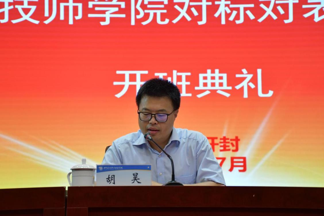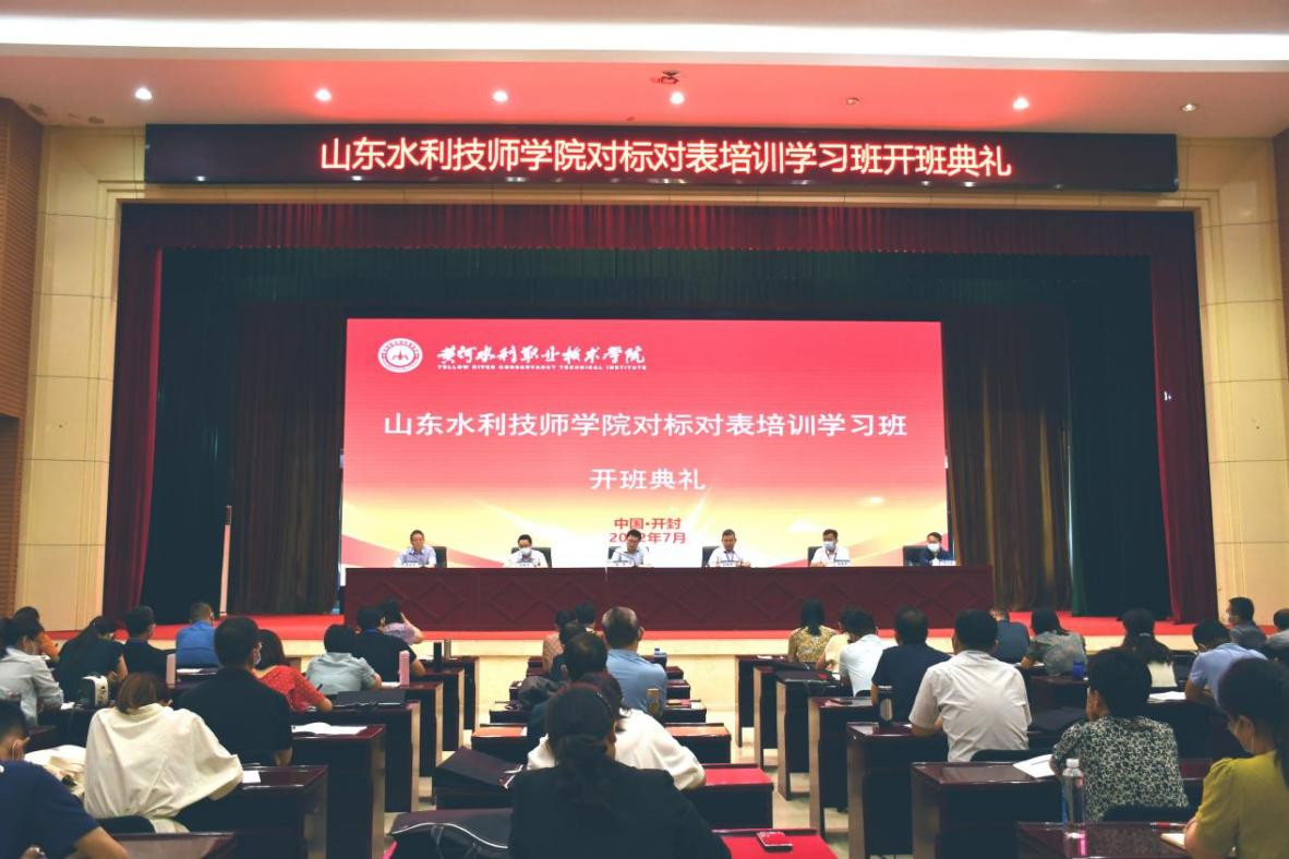 7月17日下午,山东水利技师学院党委副书记、校长孙桐传一行55人到我校参加对标对表培训学习班。7月18日上午,举行培训班开班典礼,山东水利技师学院参加开班典礼的有党委副书记、校长孙桐传,党委副书记杨敬涛,党委委员、副校长边敦典和52名培训学员,我校党委副书记、校长胡昊,党委组织部部长周志琦,继续教育学院院长薛建荣出席开班典礼。典礼由继续教育学院院长薛建荣主持。