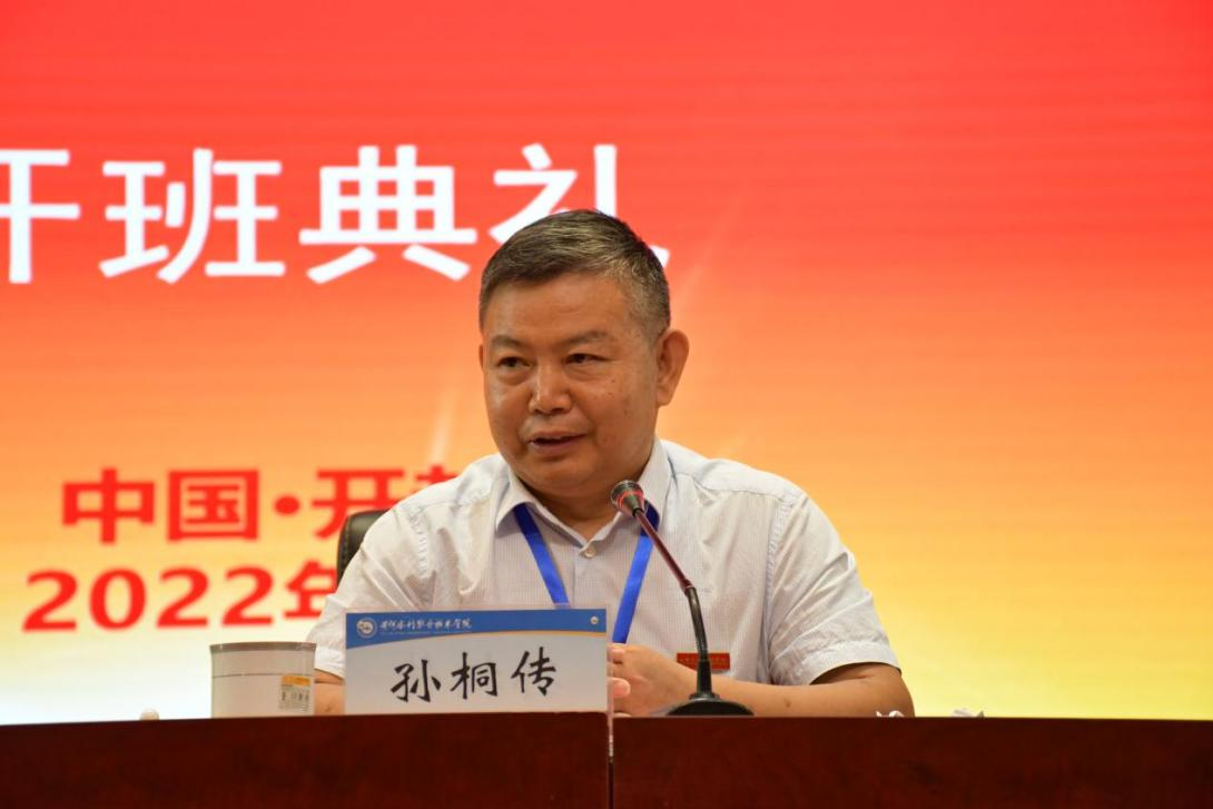 随后,山东水利技师学院党委副书记、校长孙桐传做了培训动员讲话,对培训班学员提出了期望和要求。希望大家借此机会认真学习领会,通过专家讲座、现场教学、交流研讨等学习方式进一步提高教育教学管理水平和教师教学团队建设,同时强调了培训期间学员的相关纪律和要求。
