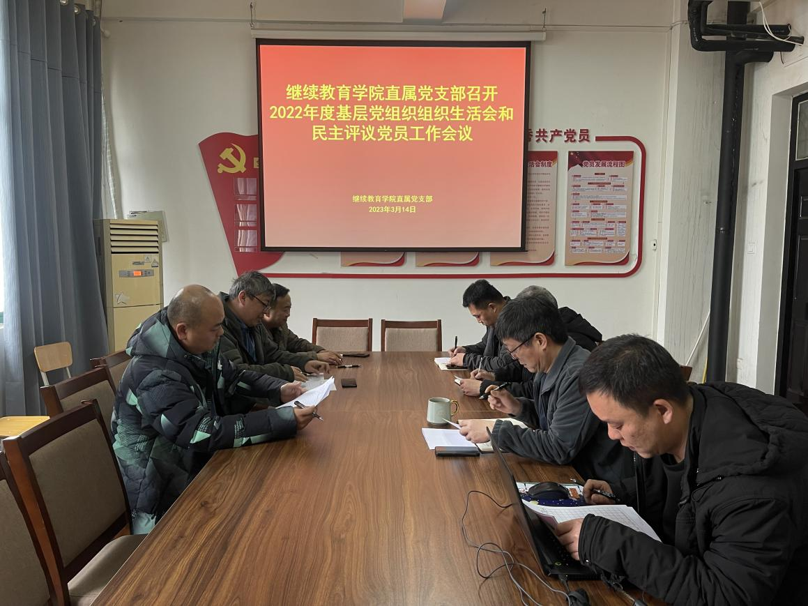 2023年3月14日,继续教育学院直属党支部组织全体党员召开2022年度组织生活会和民主评议党员工作会议,会议由党支部书记薛建荣主持。