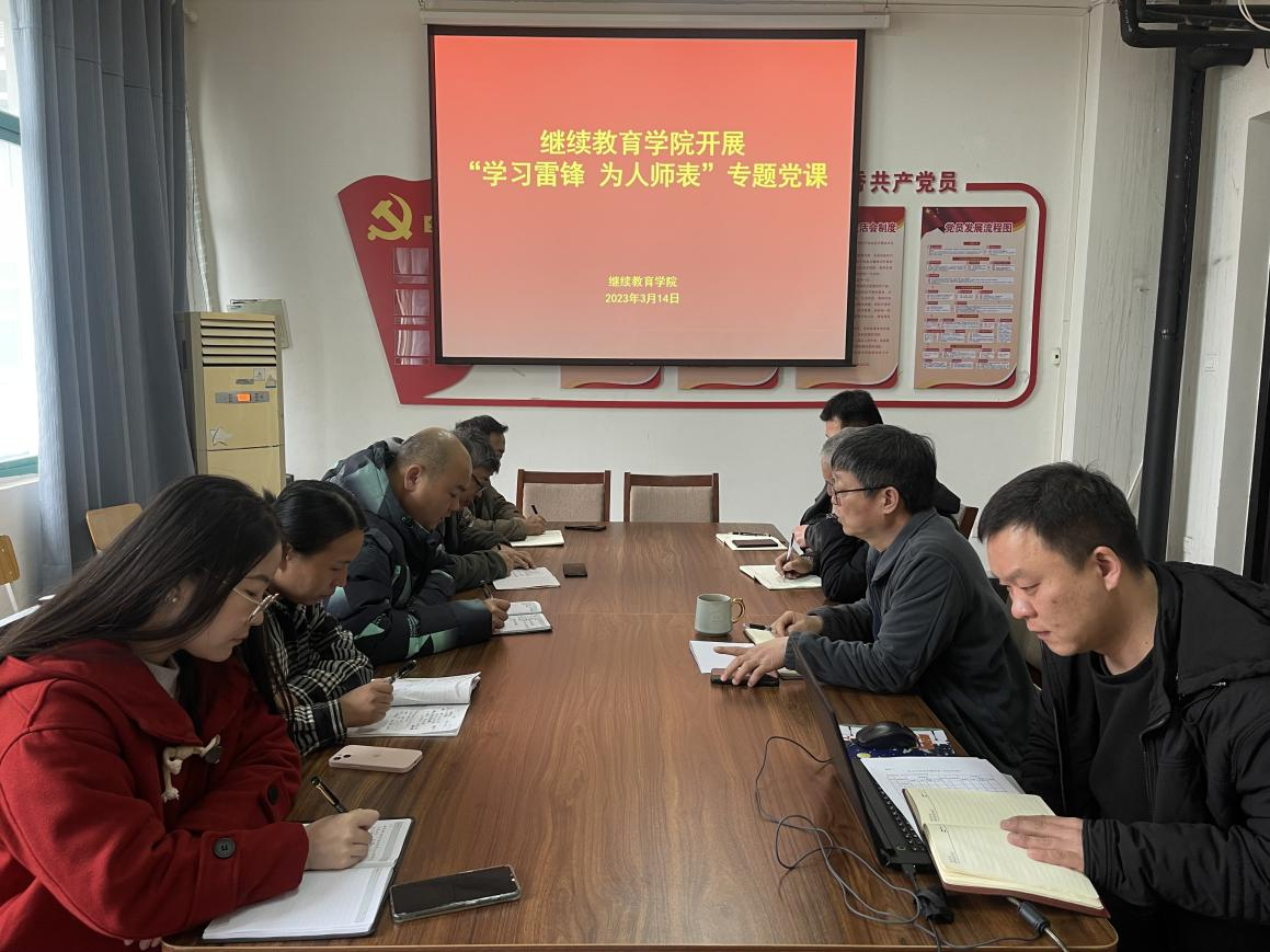 根据学校党委《中共黄河水利职业技术学院委员会深入开展学雷锋活动实施方案》文件精神,为深入贯彻落实党的二十大精神,弘扬和践行雷锋精神,3月14日,继续教育学院在4号教学楼四楼会议室开展“学习雷锋 为人师表”专题党课,全体教职工参加。