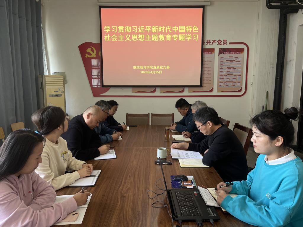 为推动主题教育扎实开展,营造良好的学习氛围,4月25日,继续教育学院直属党支部召开学习贯彻习近平新时代中国特色社会主义思想主题教育专题学习,会议由直属党支部书记薛建荣主持,全体教职工参加。