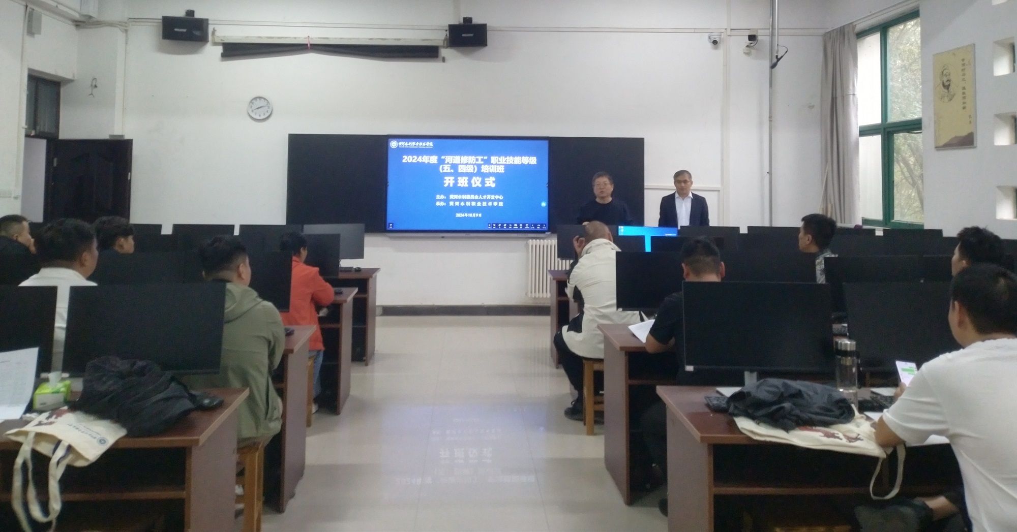 9号上午,开班仪式在实训馆3208举办。继续教育学院院长薛建荣、水利工程学院副院长谭建领出席开班仪式。开班仪式后,水利工程学院组织专业教师为学员们开展了为期4天的线下技能培训。13号进行了理论和技能考核的认定工作。