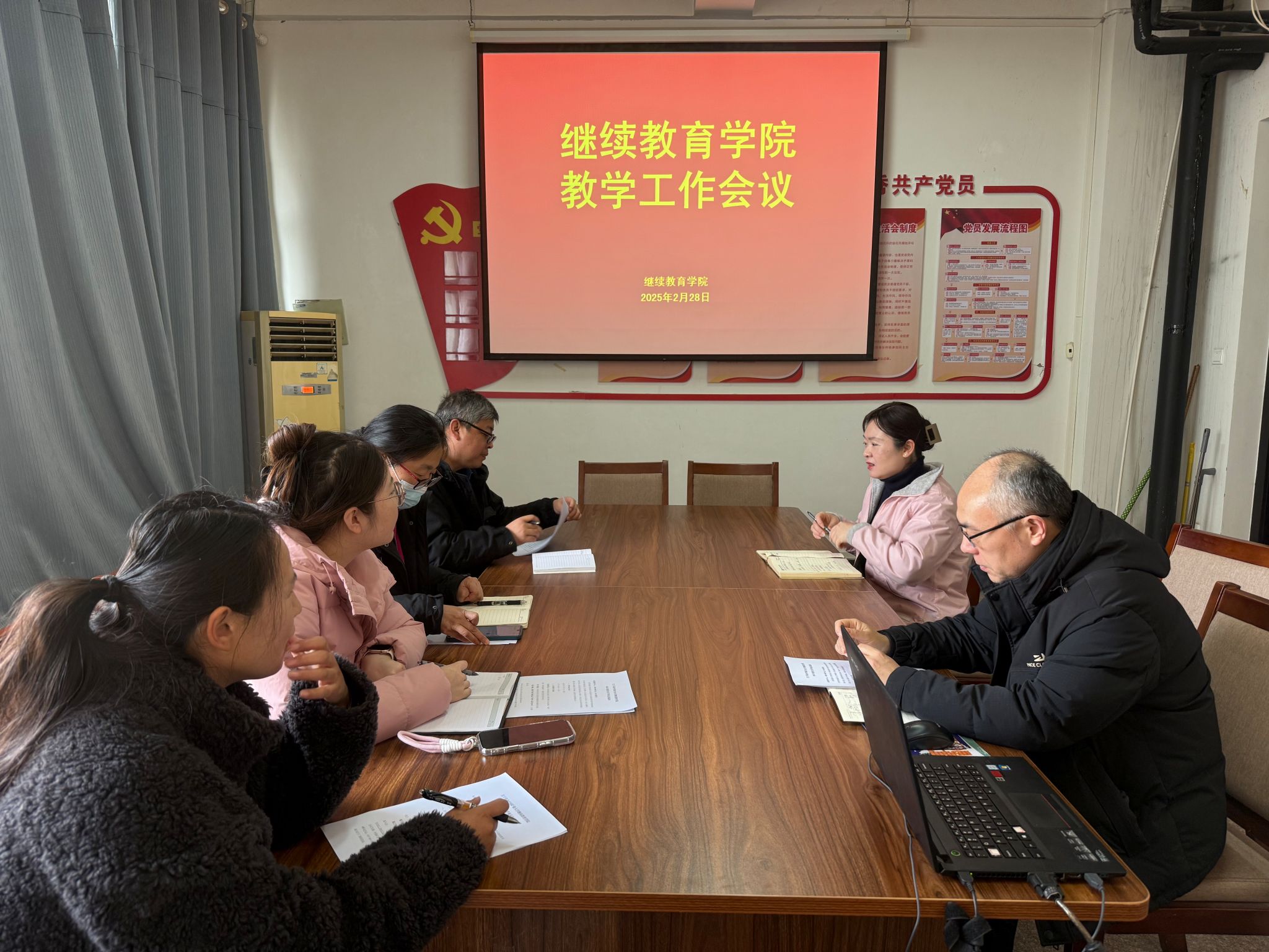为进一步落实学校教育教学质量提升要求,扎实推进继续教育学院教学评估准备工作,2025年2月28日,继续教育学院召开教学工作会议,会议由副院长王靖主持,各科室负责人、教学管理相关工作人员参会。