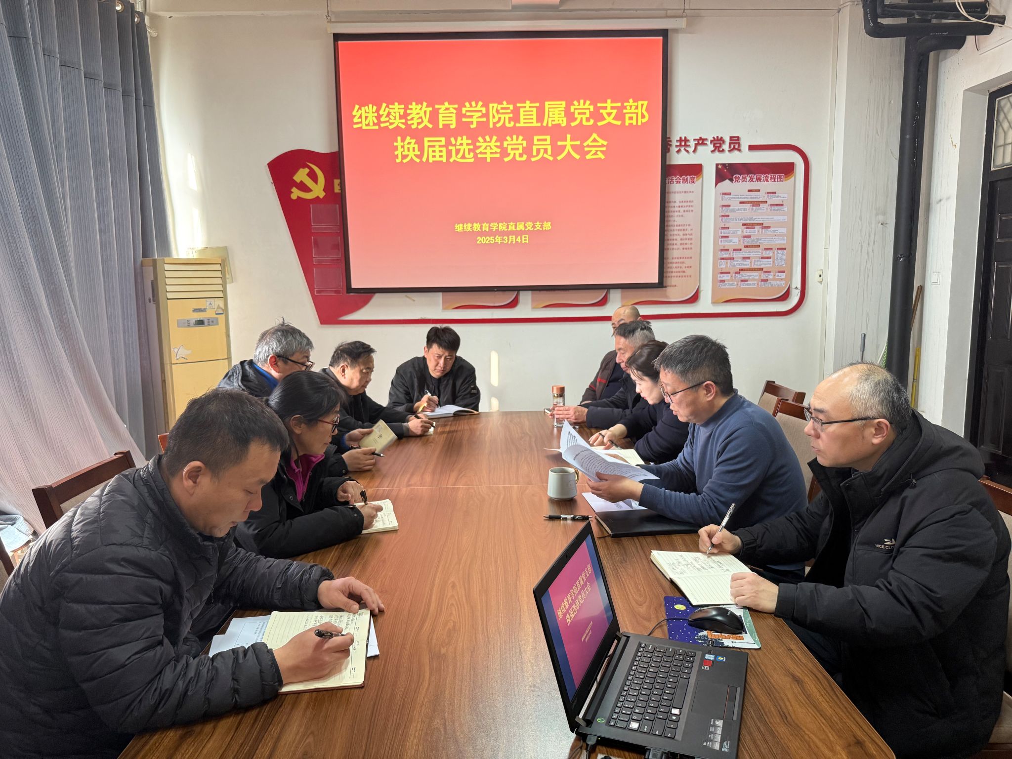 根据《中国共产党章程》《中国共产党普通高等学校基层组织工作条例》《中国共产党基层组织选举工作条例》的有关规定,按照学校党委关于基层党组织换届选举工作的有关部署,2025年3月4日,继续教育学院直属党支部在会议室召开党支部换届选举党员大会,选举产生新一届直属党支部委员会。大会由直属党支部书记薛建荣主持,全体党员参加。