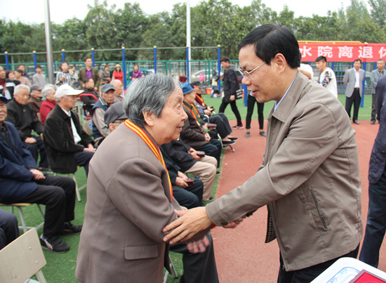 校党委书记许琰为开幕式致辞。许书记首先代表校党委对趣味运动会的举办表示热烈的祝贺,向全体离退休老同志致以亲切的问候,对离退休老同志多年来一如既往地关心和支持学校发展表示诚挚的感谢,并向大家通报了近期学校的工作情况。许书记表示,学校取得的办学成就凝结着老同志们的辛勤汗水和智慧,倾注着老同志们的拳拳热诚和矢志不渝的爱校情怀。离退休老同志们是学校发展壮大的拓荒者,是学校事业前进路上的奠基人,是学校持续发展的坚强后盾。学校将全力为老同志提供关爱和服务,为老同志多办实事、多做好事、多解难事,也希望老同志一如既往地关心、关注和支持学校的建设和发展,为学校“十三五”发展积极建言献策,在支持改革、维护稳定、促进发展中做出新的贡献。