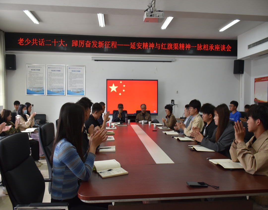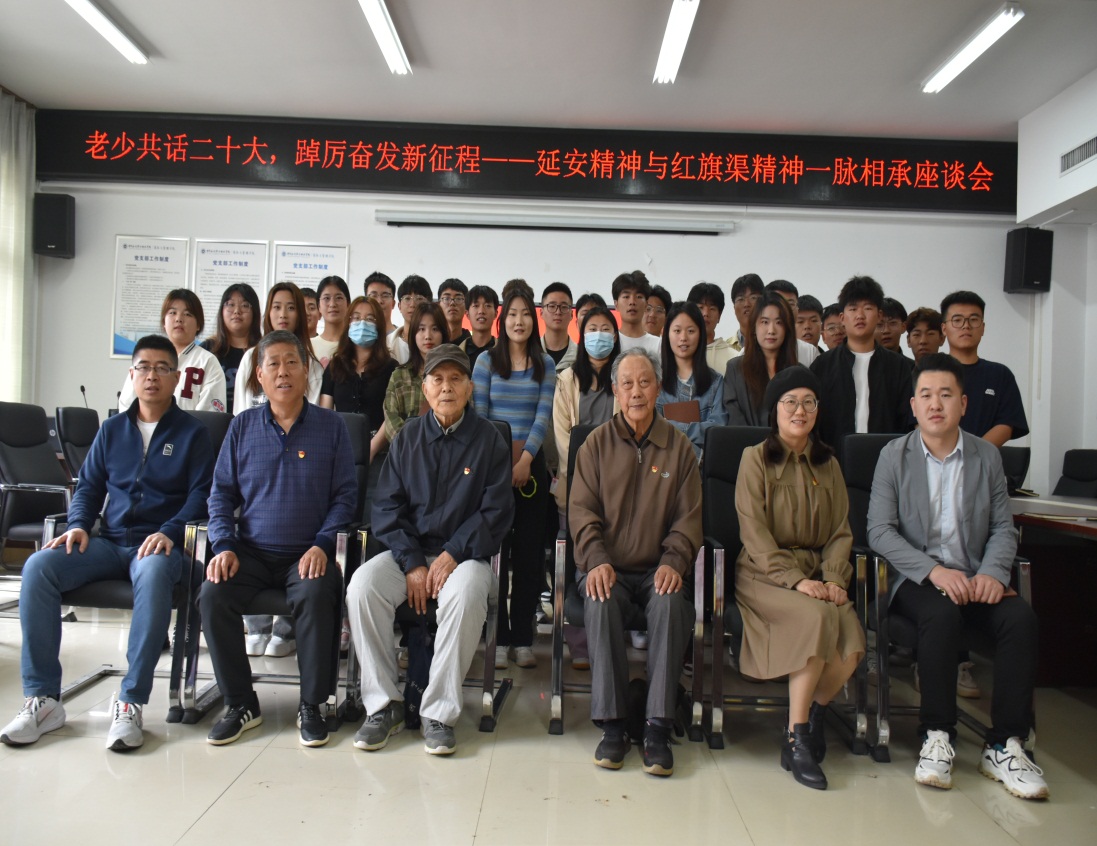 5月6日上午,学校退休老党员、老干部、老教师郑乃明、白济民在商务与管理学院党员活动中心与商管院师生代表共话党的二十大,以黄河水利职业技术学院发展为例,就习近平总书记关于延安精神与红旗渠精神是一脉相承的重要论述进行座谈,勉励教师和青年学生继承和弘扬延安精神和红旗渠精神,踔厉奋进新征程,将人生梦想融入中华民族伟大复兴的中国梦,不懈努力,勇攀高峰。参加座谈会的还有离退休党总支书记李少春,商管院党总支书记樊建科、副书记邹新忠,学院“双带头人”程云翔,代理分团委书记肖星野,骨干教师田丰,红旗渠精神传承人秦晨凯等。