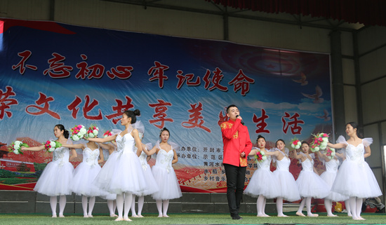 富平社区(孙庄村)第十二届科普文化节以“不忘初心 牢记使命 繁荣文化共享美好生活”为主题,旨在进一步深刻领会习近平新时代中国特色社会主义思想,深入学习贯彻党的十九大精神,丰富群众文化生活,建设文明和谐新农村。富平社区对长期友好结对帮扶单位赠送锦旗,共绘帮扶工作新蓝图;对在文明社区建设中表现突出的先进个人和集体进行表彰,选树先进典型,奖项有优秀共产党员、先进工作者、五好家庭文明户、十佳孝子(好媳妇、好婆婆)、精准扶贫贡献奖、文化建设贡献奖、文化宣传先进奖、社会爱心人士、星级卫生户等。在文化节表演环节,我校学生助演的歌伴舞《天耀中华》,歌声优美动听,舞姿妙曼,抒发了祖国儿女的血脉情怀;歌曲《红旗飘飘》,感情真挚、催人奋进,抒发了中华儿女的民族自豪感和对祖国的热爱。节目的精彩演出赢得了观众阵阵热烈的掌声,展现了我校大学生昂扬向上、朝气蓬勃的精神面貌。村民们自编自演的盘鼓、舞龙、合唱、武术、快板、舞狮等节目,充分展现了社区居民健康文明的精神风貌和纯朴敦厚的民风。
