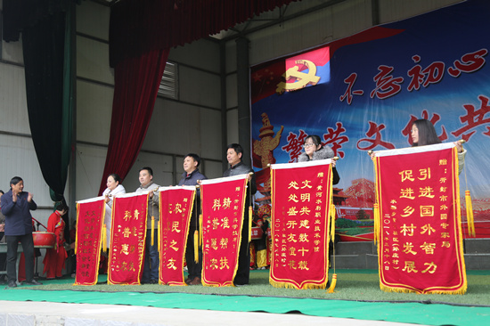 3月18日,我校帮扶的水稻乡富平社区(孙庄村)举办第十二届科普文化节,我校大学生艺术团16名学生在校党委宣传部、团委组织下助演科普文化节,开展新农村文明共建活动。我校因长期以来在结对帮扶富平社区(孙庄村)扎实推进美丽乡村建设方面的突出贡献,获赠“文明共建数十载 处处盛开友谊花”锦旗。