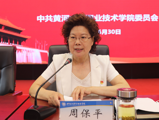 周保平强调,今年是学校“双高校”建设全面启动之年,全体教职员工要有“等不起”的紧迫感、“慢不得”的危机感、“坐不住”的责任感,抓住职业教育改革发展的良机,推动学校以更快的速度向更高的目标迈进。就如何进一步加强党的建设,推动学校事业高质量发展,她提出5点要求与希望。一要突出压力传导,抓好责任落实。疫情防控工作仍然是当前最大的政治责任,各级党组织要全面统筹抓好疫情防控与“双高校”建设两方面的工作落实。要坚持把党的政治建设摆在首位,坚持党对学校改革发展的全面领导,坚持和完善党委领导下的校长负责制。校党委全面落实管党治党主体责任,各基层党组织书记要牢固树立党建主责主业意识,班子成员要落实“一岗双责”,形成具体明确、环环相扣的责任链条。二要突出立德树人,抓好思想建设。要坚持把学习习近平新时代中国特色社会主义思想与视察河南时重要讲话精神、习近平总书记关于教育的重要论述紧密结合起来。要把抗疫故事作为“把灾难当教材 与祖国共成长”主题教育活动的生动教材,以战“疫”精神培养堪当大任的时代新人。要坚持立德树人,完善“十大”育人体系,深入落实“三全育人”综合改革实施方案。要推动课程思政与思政课程深度融合,组建学生思想政治教育专业化研究团队,严格落实意识形态工作责任制。三要突出固本强基,抓好组织建设。要全面推行基层党建“十抓”工程,建立“十抓”智慧党建工作平台;以道桥教工党支部、马克思主义学院直属党支部创建“全国党建工作样板支部”为抓手,推动党支部标准化规范化建设;实施“双带头人”培育工程,建好“双带头人”党支部书记工作室,推动党建业务融合发展;建成黄河文化干部教育学院,传承、弘扬黄河文化,服务黄河流域生态保护与高质量发展;充分发挥学校教育、技术和人才优势,建设青年乡村振兴创新创业实践基地,助力精准扶贫与乡村振兴战略。四要突出能力提升,抓好队伍建设。要持续巩固深化“不忘初心、牢记使命”主题教育成果,持续推进并长期坚持主题教育检视问题的整改落实,提升广大党员干部的凝聚力和战斗力;加大干部培养力度,依托黄河文化干部教育学院,确保各级各类干部教育培训全覆盖;坚持提升党员干部学习、服务、创新三种能力,健全干部考核评价体系,坚持党管人才原则,提高党管人才工作质量。五要突出从严从实,抓好廉政建设。各级领导干部要扛稳压实“两个责任”,切实发挥好示范引领作用;深刻把握新形势新任务新要求,紧盯“关键少数”,紧盯重要节点,推进作风抓细抓实;坚持“一防二纠三查四改五建”“五步工作法”一体推进以案促改,深化标本兼治。