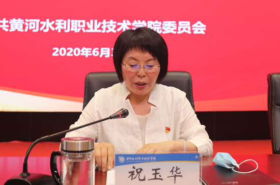 校长祝玉华宣读了《中共河南省委高校工委 河南省教育厅关于表彰委管高校优秀共产党员、优秀党务工作者和先进基层党组织的决定》和《中共黄河水利职业技术学院委员会关于表彰2020年度先进基层党组织、优秀共产党员和优秀党务工作者的决定》。
