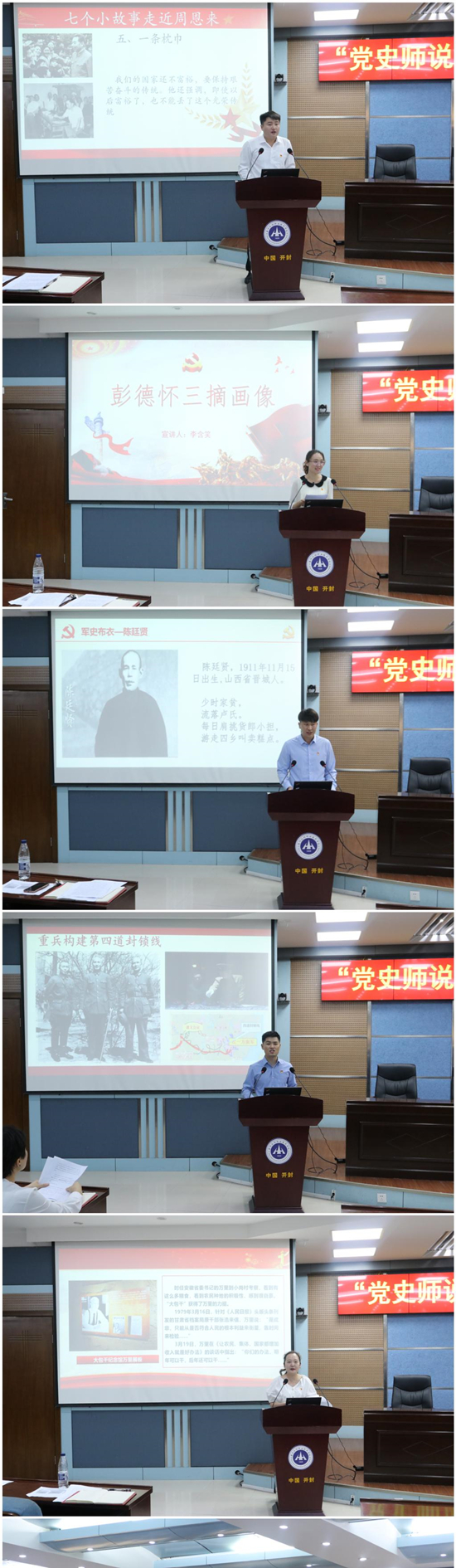 宣讲会上,测绘工程学院辅导员赵颢迪、艺术与设计学院辅导员李含笑、机械工程学院辅导员王浩宇、信息工程学院分团委书记何昕、金融与会计学院分团委书记马峥分别进行了题为《七个小故事走进周恩来》《彭德华三摘画像》《军史布衣陈廷贤》《血战湘江》《十八个血手印》的党史宣讲。宣讲结束后进行了有奖问答环节,全体师生踊跃参与,将宣讲会的气氛带到了高潮。