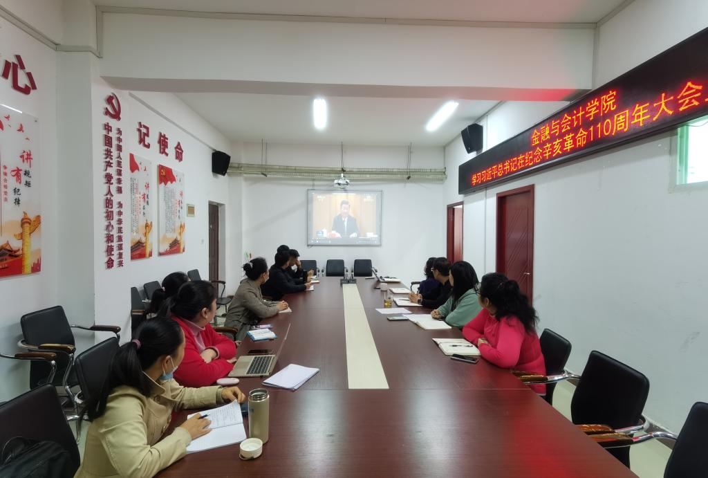 1012日,我校各部门、各单位积极组织集中学习习近平总书记在纪念辛亥革命110周年大会上的重要讲话等习近平总书记近期重要讲话精神及《中国共产党统一战线工作条例》内容。习近平总书记强调,我们要以史为鉴、开创未来,在全面建设社会主义现代化国家新征程上继续担当历史使命,掌握历史主动,不断把中华民族伟大复兴的历史伟业推向前进。此次专题学习,带领大家回顾了中国共产党继承孙中山先生革命事业、团结带领人民不懈奋斗的光辉历程,明确了辛亥革命110年来的历史启示。广大教职工纷纷表示,要牢记总书记的嘱托,继续发扬中华儿女始终不渝的爱国精神,引导广大学生践行“请党放心,强国有我”的誓言。 (供图:各相关部门)