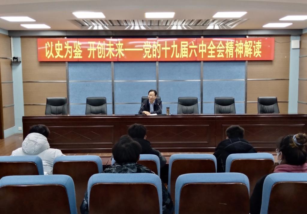 12月21日下午,副校长刘守义在3号实训楼报告厅以《以史为鉴 开创未来——党的十九届六中全会精神解读》为题向学生干部宣讲党的十九届六中全会精神,12个学院学生干部代表聆听了报告。