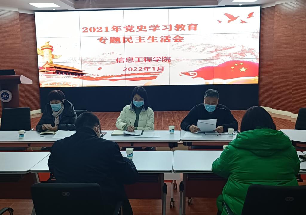 会前,罗朝峰代表党政领导班子汇报了信息工程学院“党史学习教育”活动的开展情况,随后按照“学史明理、学史增信、学史崇德、学史力行”和“学党史、悟思想、办实事、开新局”的目标要求,作了检视剖析,重点查找了“汲取党史中经验,旗帜鲜明讲政治,严守党的政治纪律和政治规矩,落实中央八项规定及其实施细则精神”等方面问题,深挖问题根源。从始终坚定不移把加强党的政治建设摆在首位、始终坚定不移强化思想理论武装、始终坚定不移践行全心全意为人民服务的宗旨、始终坚定不移加强干部队伍建设、始终坚定不移正风肃纪反腐等方面明确了整改思路和措施。