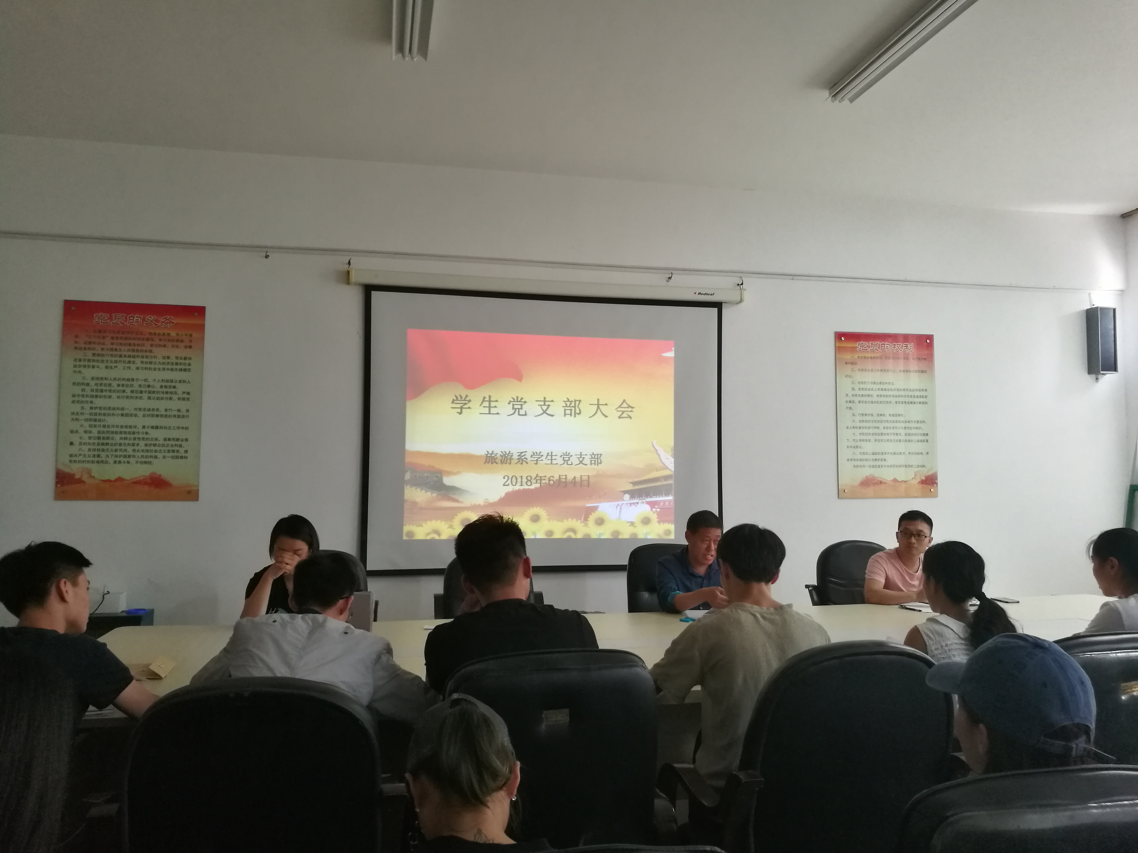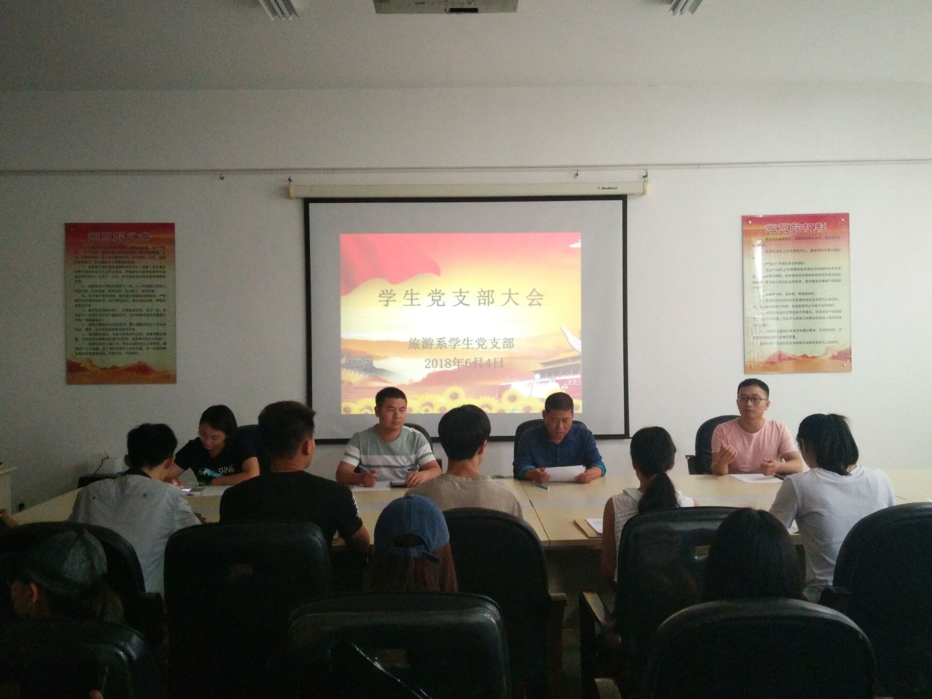 6月4日中午,在旅游系会议室SY5206召开旅游系学生党支部大会,旅游系学生党支部的全体党员、预备党员、入党积极分子代表参加了此次大会。旅游系党总支书记樊建科应邀出席了此次党员大会。此次大会主要讨论王洁尘、刘康彪、李婷婷、化林慧、邢静、马兴龙、任玉红、康亿豪、祝楚皓等9位同志发展为预备党员培养对象的问题。
