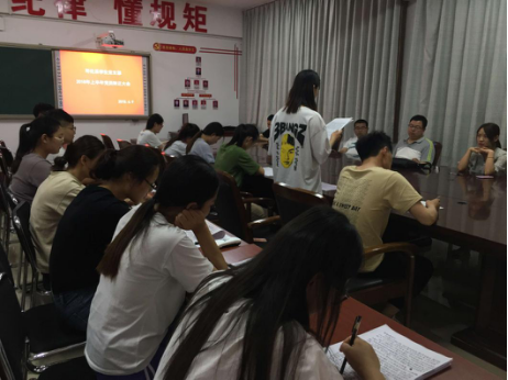 6月9日中午,环化系学生党支部在SY5404系会议室召开了2018年上半年学生党支部党员转正大会,系党总支副书记王振强出席本次会议,大会由学生党支部书记武琳琳主持。