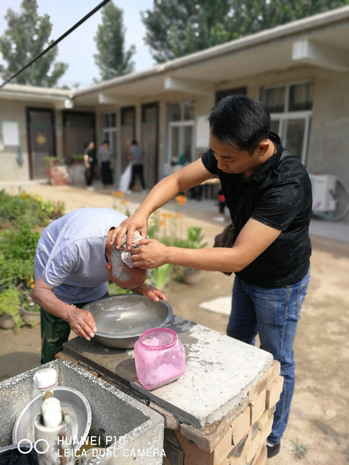 这次慰问活动,志愿者们不仅为老人们送去了飘香的粽子,还专门请开封市高特发艺的理发师为老人们理发。了解到这里的老人都患有高血压病,为了方便日常测量血压,及时预防,这一次党员志愿者服务队为老人们购买了家用电子血压测量仪,并现场为老人们测量血压。党员教师们为老人洗头、量血压、与老人们坐在一起拉家常,亲切交流,让他们感受到亲人般的温暖,体味到社会大家庭的和谐。老人们高兴不已, 脸上始终洋溢着幸福的笑容。临别之时,老人们站在门口,依依不舍,挥手告别。