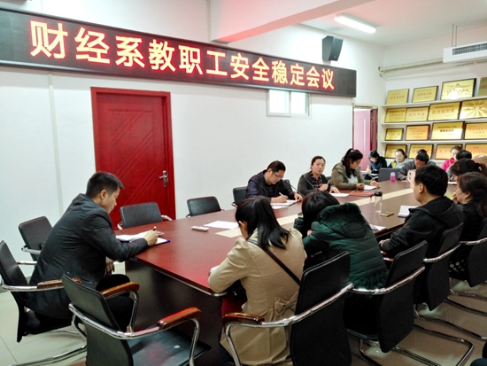 4月24日下午,财经系党总支在系党员会议室SY5412召开安全稳定工作会议,财经系全体教职工参加会议,会议由系主任宋建涛主持。