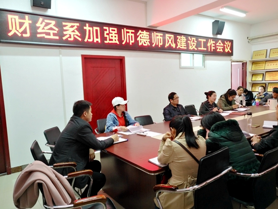 4月24日下午,财经系党总支在系党员会议室SY5412召开加强师德师风建设工作会议,财经系全体教职工参加会议,会议由系主任宋建涛主持。