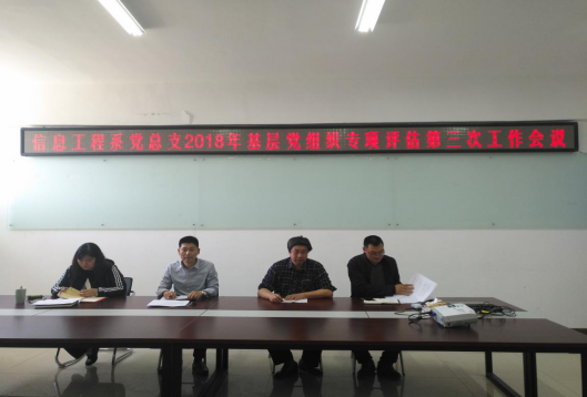 继学期初信息工程系对基层党建专项评估指标体系进行了解读和责任分解两次推进会后,4月9日上午,信息工程系党总支召开基层党组织专项评估工作第三次推进会,系党总支委会成员和各支部支委会成员参会,会议由党总支书记商坤主持。