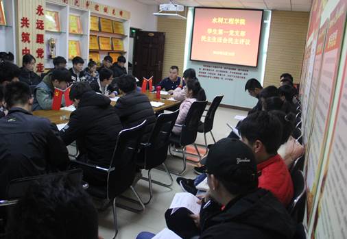 2018年3月15日13:00,在sy5306党员活动室召开了水利工程学院学生第一党支部民主生活会民主评议,参加会议的有学生一支部书记万勋老师、副书记许晓瑞老师和学生第一党支部成员。