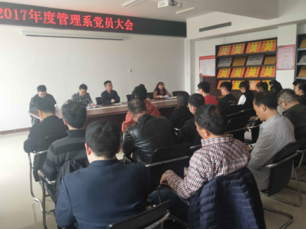 2018年3月13日下午14:40分,管理系党总支教工党支部的2017年度党员民主评议在SY5420党员活动室举行。会议由管理系党总支副书记邹新忠同志主持,校党委副书记刘卫锋同志以普通党员身份莅临会议,管理系全体师生党员出席。