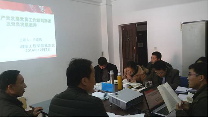 为提高党支部委员的工作水平,促进我院党支部工作的规范化和制度化。2016年12月2日我院党总支举办了党支部委员培训,集中学习了“三会一课”与“中国共产党发展党员工作细则与程序”两大内容。会议由党总支书记纪勇主持,测绘学院全体党组织的干部参加了会议。