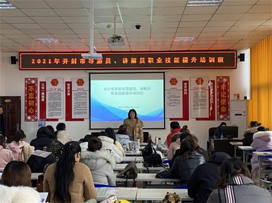 3月19日,我校承办的开封市2021年导游员职业技能提升培训班顺利开班,共有来自开封市各大景区、各旅行社的146名文旅从业人员参加培训。