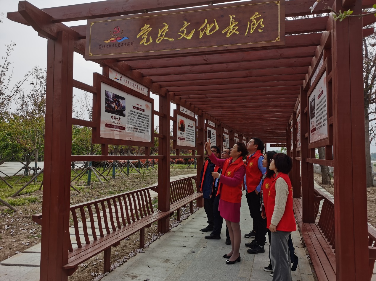 在党史文化长廊中,党总支书记张红梅带领大家回顾了党的一大到十九大的发展历程及党一路走来的风雨征程。“党史里写着共产党人的灵魂,指引着将来的命运。对待党史,当时刻怀着敬畏之心。回顾党史,也是为了更好地以史为鉴,把握现在,面向未来;回顾党史,也是为了寻根溯源,心有所依,情有所归。”通过学习激励支部党员牢记初心使命,努力开创各项事业高质量发展新局面。