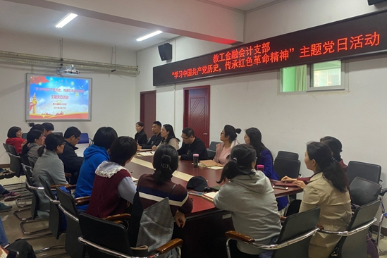 4月27日下午,教工金融与会计支部在SY5412会议室举行“学习中国共产党历史,传承红色革命精神”主题党日活动,全体教工党员参加。会议由支部宣传委员申荷珺主持。