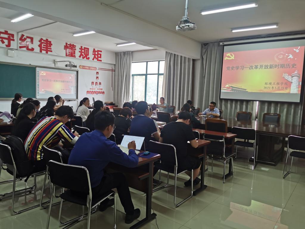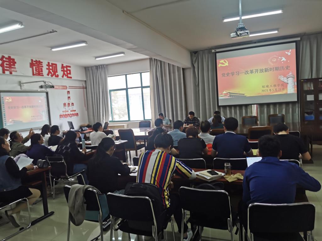 2021年5月25日,环境工程学院在SY5405会议室开展政治理论学习——《改革开放新时期历史》专题学习会。会议由党总支书记王国英主持,教工支部副书记申森领学,全体教职工参加了此次专题学习。