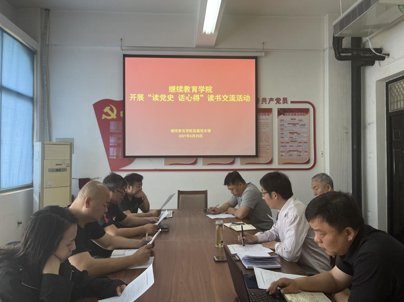 525日,继续教育学院在4号教学楼四楼会议室开展“读党史 话心得”读书交流活动,院长杜广平主持,全体教职工参加。
