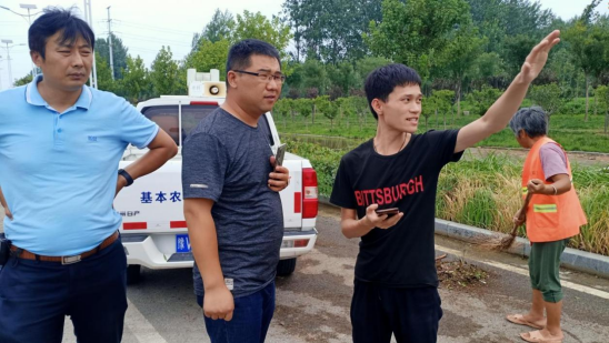 无人机应急测绘保障小组到达现场后现场,我校王学威老师和尉氏县自然资源局规划科科长袁朋积极沟通了解了当地受灾情况,随后带领摄影测量1904班学生刘豪、翟洋洋开展10个架次、历时三小时的无人机测绘作业工作。