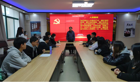 为更好的增强新发展的党员的党性观念,增强党员的历史使命感和社会责任感,2023年3月17日中午,旅游学院党总支学生旅游支部在实训楼5201举行新发展党员入党宣誓仪式。旅游学院党总支副书记徐永红、组织员张宾宾,学生党支部委员会成员、预备党员、党员,李蕊吟、魏本正等9名新发展的党员,以及10余名入党积极分子代表参加了本次入党宣誓仪式,入党宣誓仪式采取线上、线下相结合的方式进行。