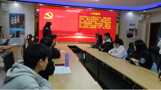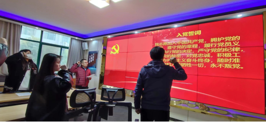 入党宣誓仪式由组织员张宾宾主持,宣誓仪式在庄严的国际歌中拉开序幕,接着,组织员张宾宾宣读了新发展的党员名单,并带领大家在党旗下庄严宣誓,进一步坚定了新发展党员的理想信念。