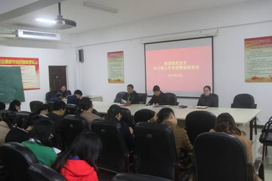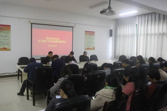 10月17日下午点14:30,旅游系党总支学习黄大年先进事迹的专题会议在旅游系党员活动室SY5201召开。旅游系党总支书记樊建科、系主任焦红强与旅游系全体党员教职工参加了此次学习活动。此次活动由樊书记主持,针对黄大年先进事迹进行再一次的深刻学习。